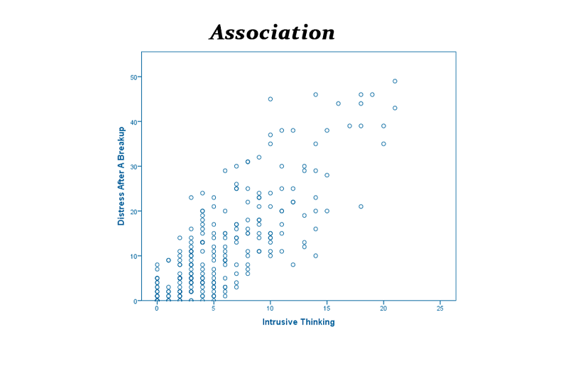 Graph 2 is telling you that there is no association whatsoever between the time elapsed since the breakup and how much in pain you can be now. Potentially, you could spend years stuck, trying to cope with a separation.